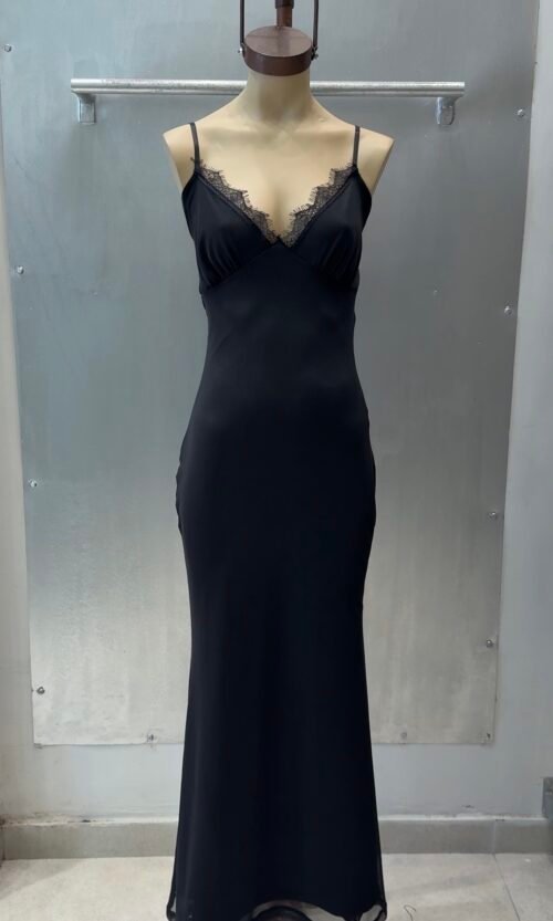$21.000,00Maxi Vestido forrado completo de microfibra, con puntilla y frunces en las tazas. Breteles regulables