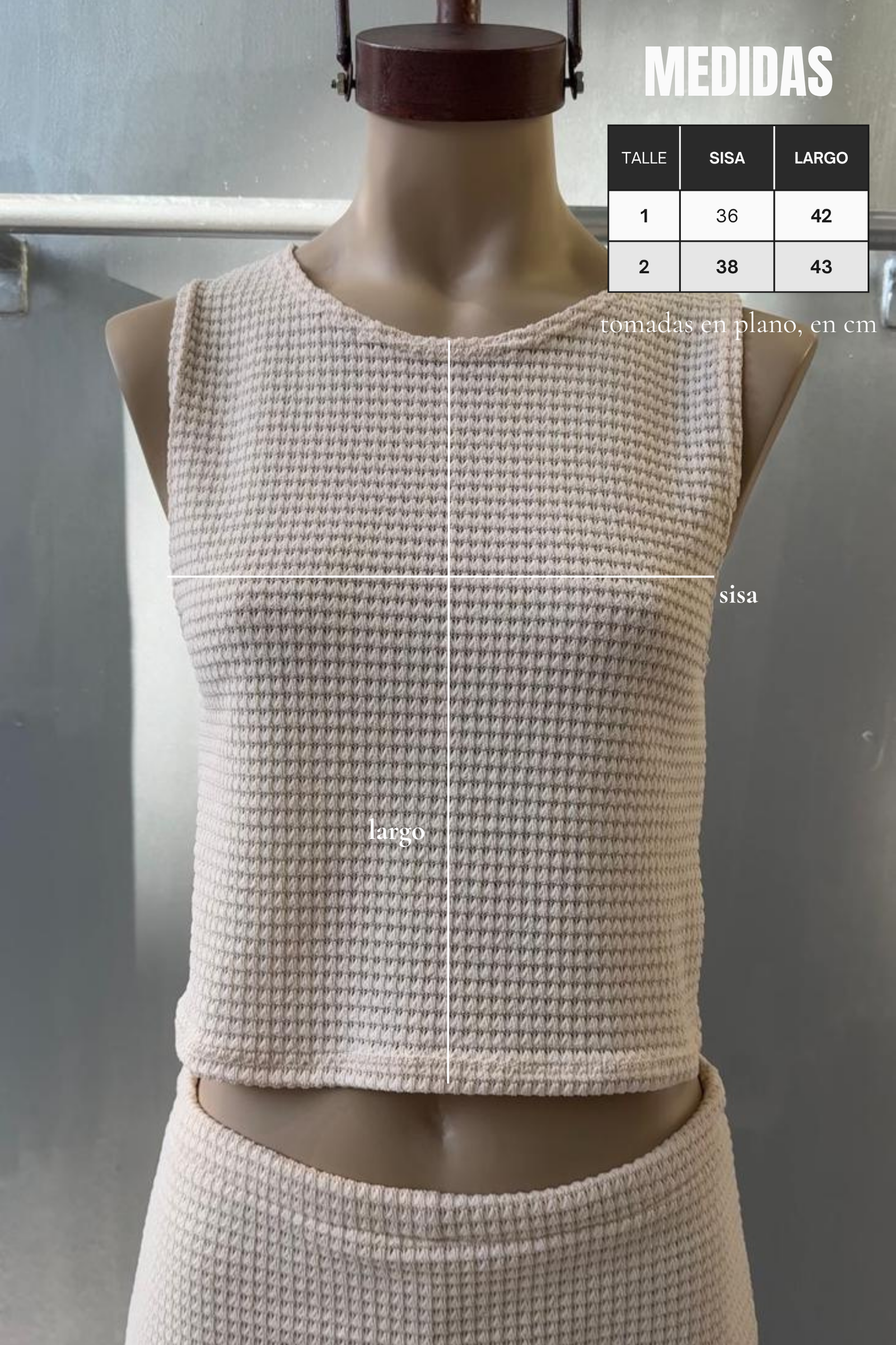 Top buche de microfibra embolsado y espalda descubierta con bretel regulable a tono.