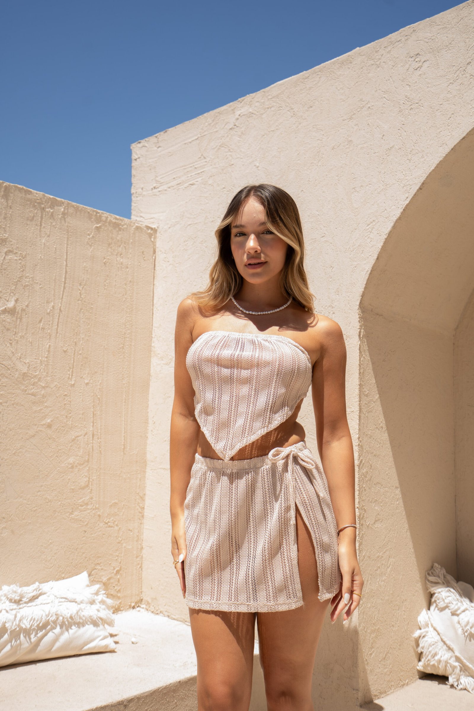 Pollera mini tiro bajo con short por dentro.