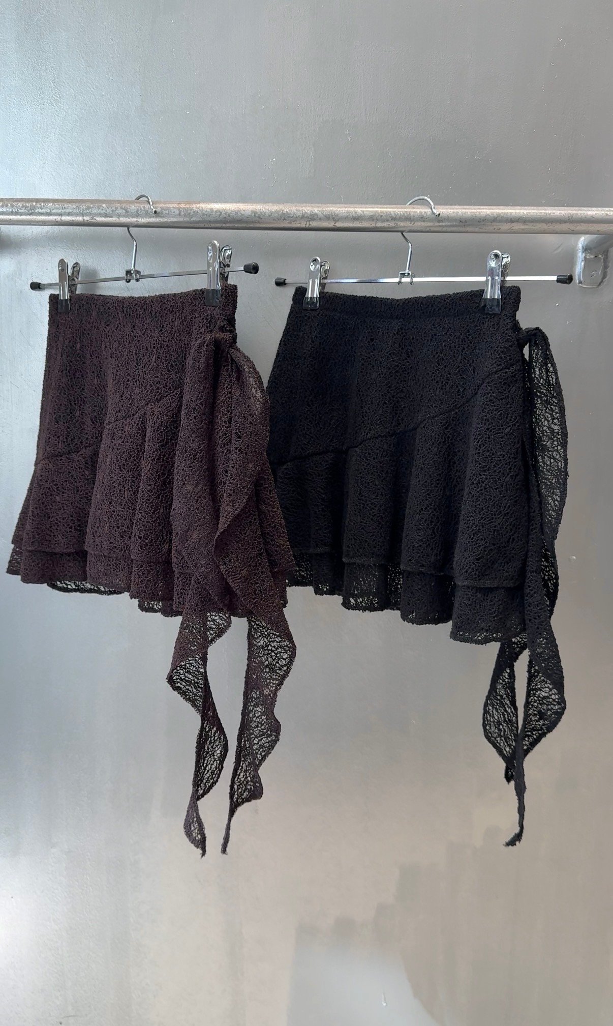 Pollera con short interno, volado irregular y tiras fijas. Con elástico.
