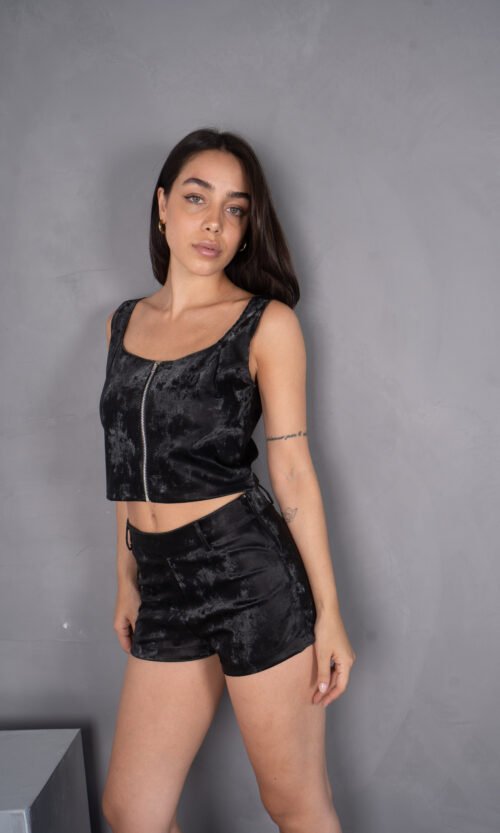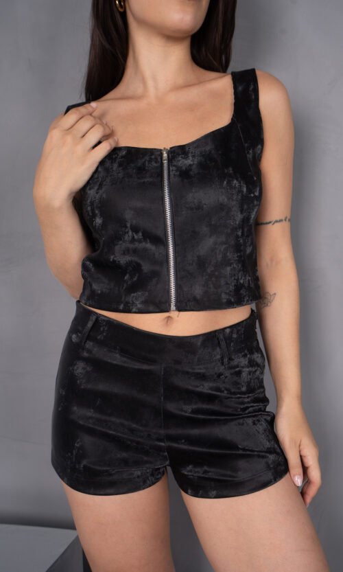 Pollera con short interno, cierre al costado y pinzas traseras.