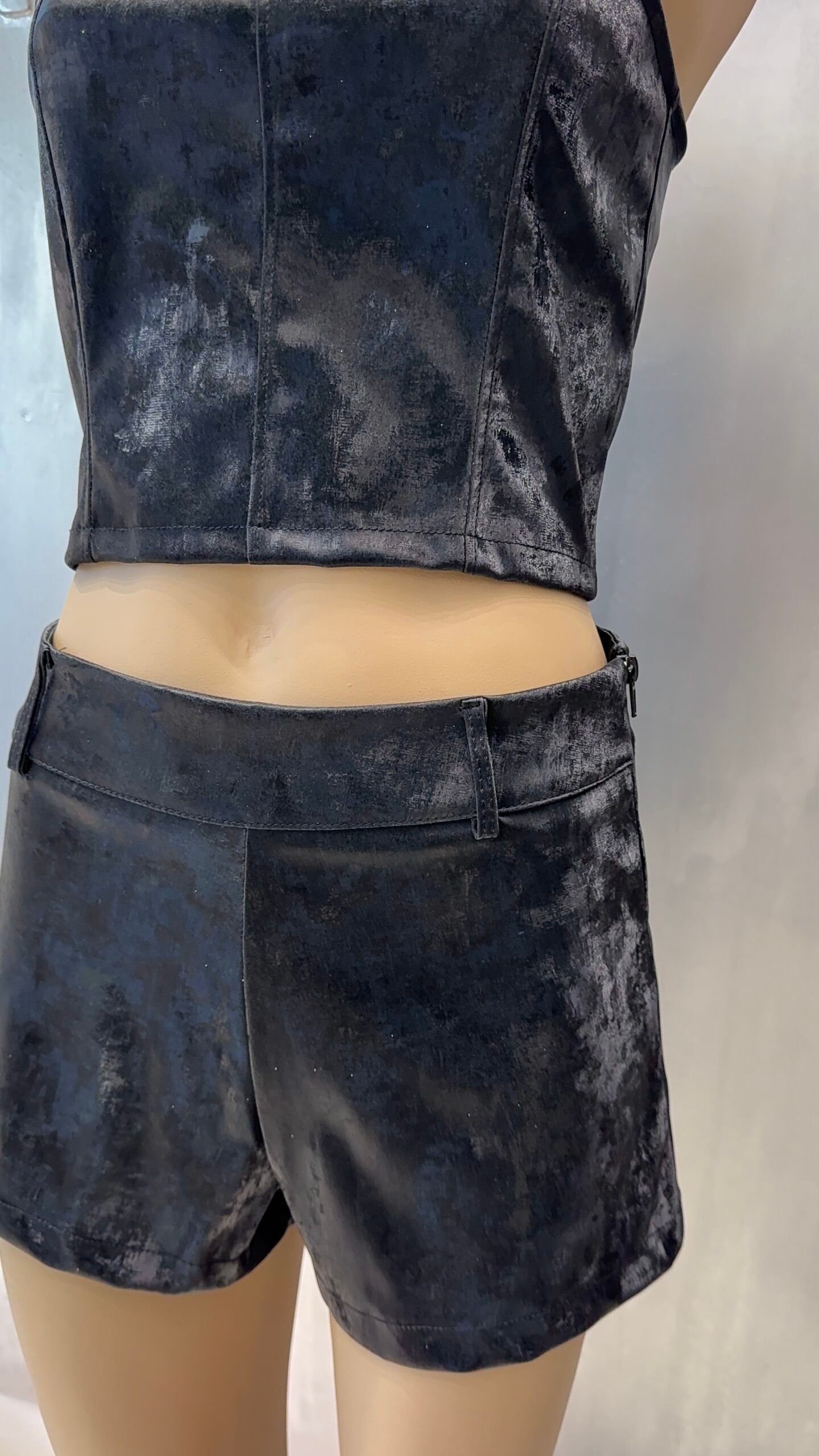Pollera mini tiro bajo con short por dentro.