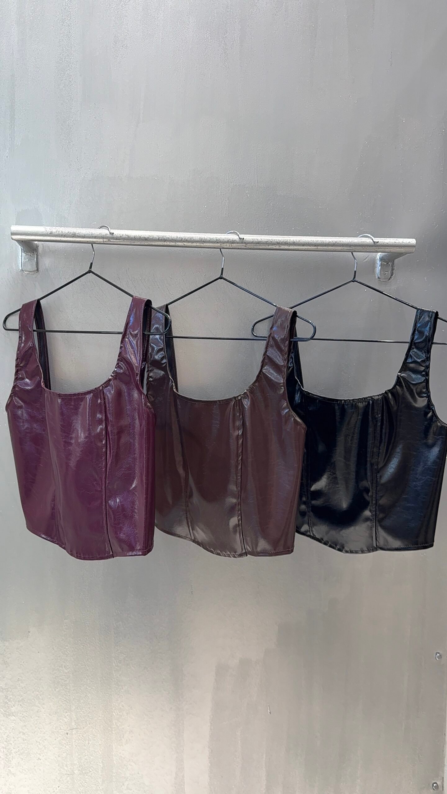 Con pasacinto, pinzas traseras y cierre al costado. Esta cuerina es rígida.