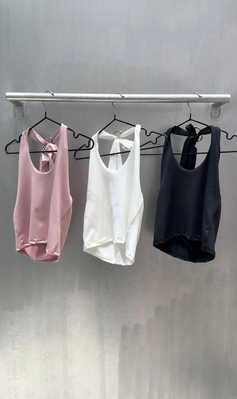 Top cuello Halter con tiras para atar en el cuello, con elástico