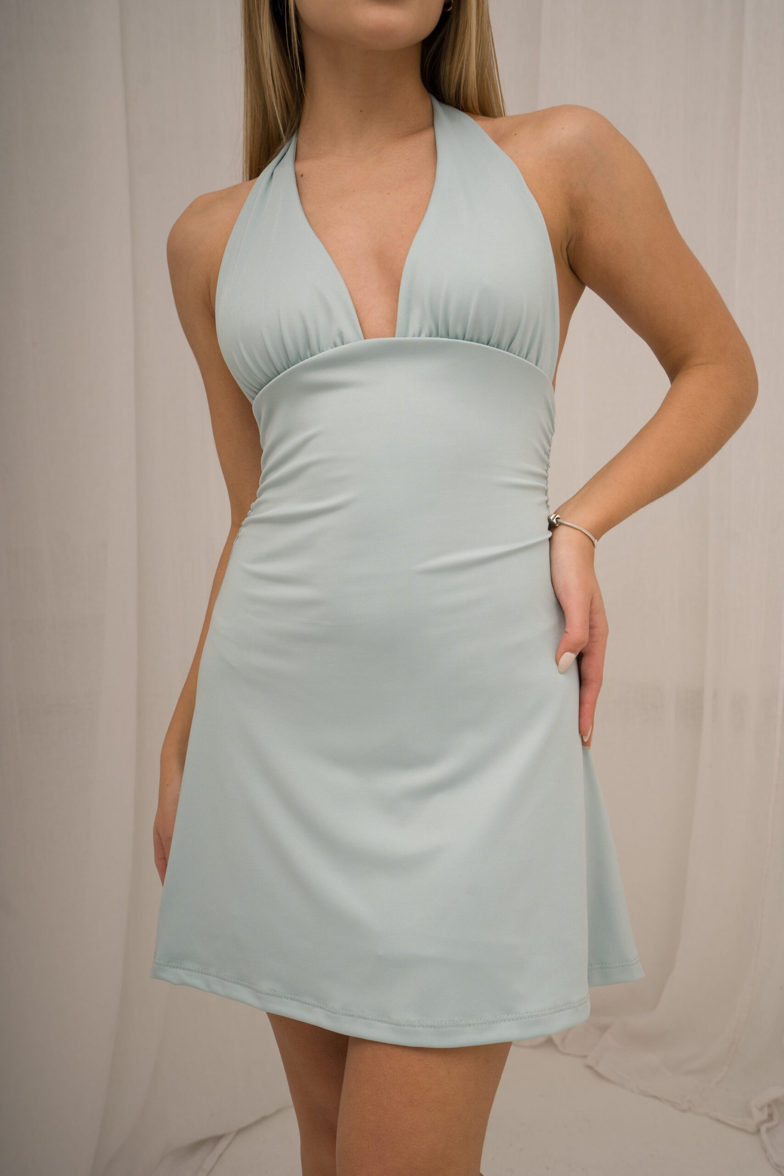 Vestido doble, con frunce y lazo