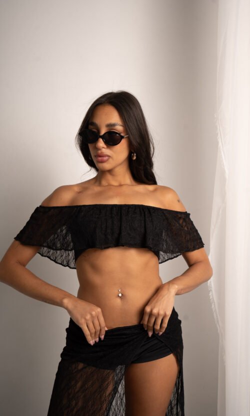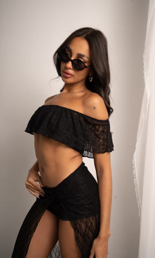 Pollera doble volado de encaje elastizado, con terminación y short interno de microfibra